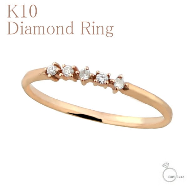 me.luxe K10 ダイヤモンド カーブライン ピンクゴールドリング 7~11号 レディース リング ピンクゴールド 10金 ...