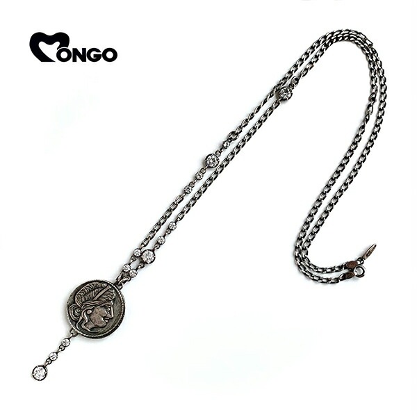 MONGO 女神 コイン ネックレス チェーン付き シルバー ジルコニア ビンテージ アンティーク ペンダント シルバーネックレス...