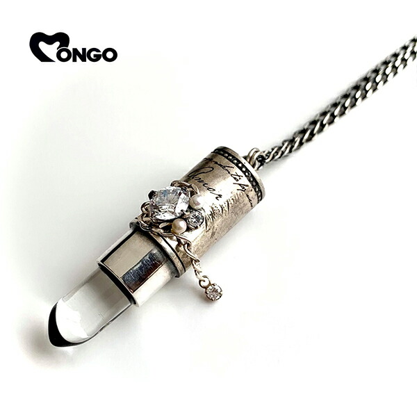 MONGO リップスティック シルバー ネックレス チェーン付き 口紅 クリア ガラス パール ペンダント シルバーネックレス レ...