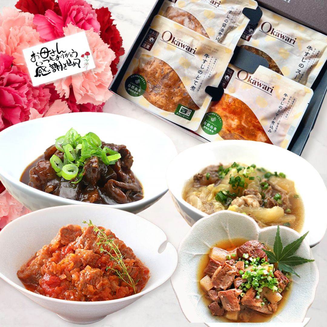 送料無料!【贈り物やギフトに最適】国産牛すじのレトルトギフトセット 4袋入り (化学調味料無添加のレトルトおかず詰め合わせセット)