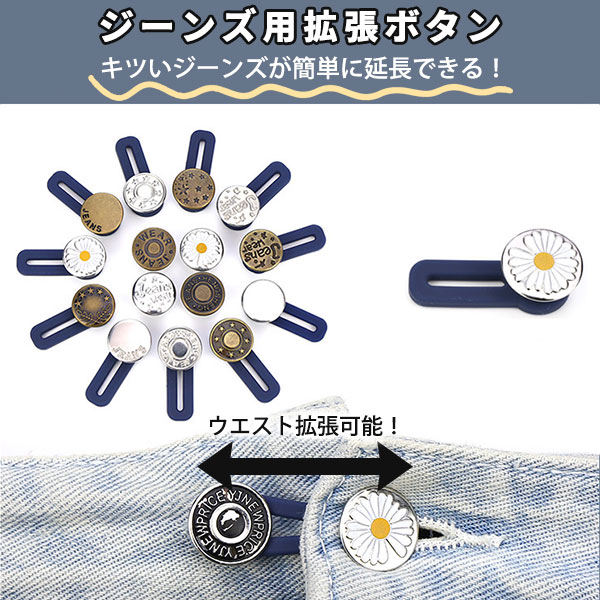 【即納】ジーンズ用 拡張ボタン 10タイプ 取り付け簡単 サイズ伸ばし 着脱らくらく アジャスター お直し不要 ウエスト拡張 マタ...