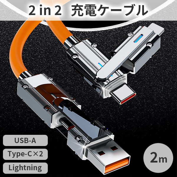 【即納】スマホ充電ケーブル 2m 2in2 Lightning Type-C Type-A 切り替え 断線に強い 送料無料