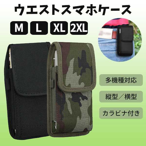 【即納】ウエストスマホケース ポーチ型 多機種対応 縦型 横型 カラビナ付き 耐久性 伸縮性 ベルクロ 軽量 コンパクト スマホポ...