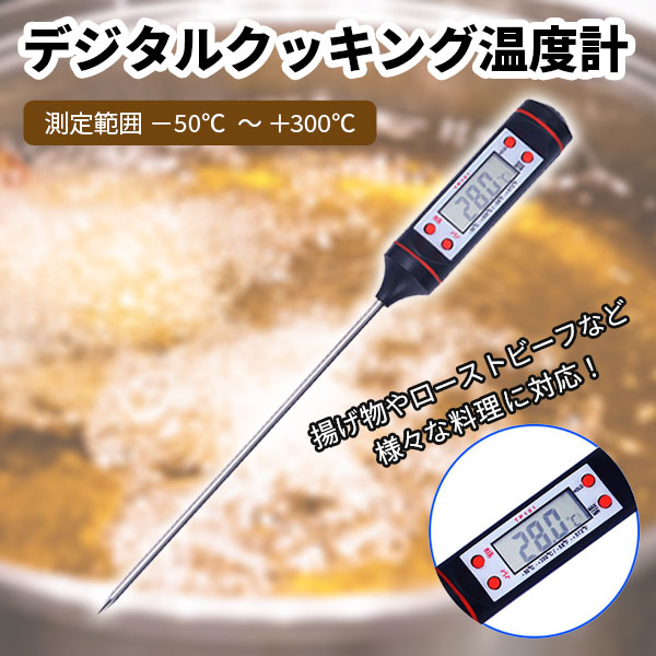 【即納】クッキング温度計 スティックタイプ 304ステンレス鋼 便利 耐熱性 最大300℃測定可 収納ケース付き デジタル温度計 ...