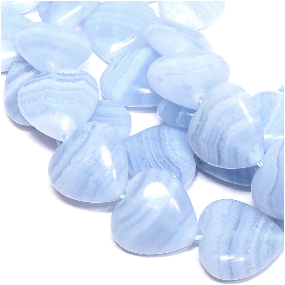 ブルーレース 14×14mm 天然石 ビーズ ハートカット 3玉セット 粒売り パワーストーン バラ売り ビ-ズ パーツ 空色縞瑪...