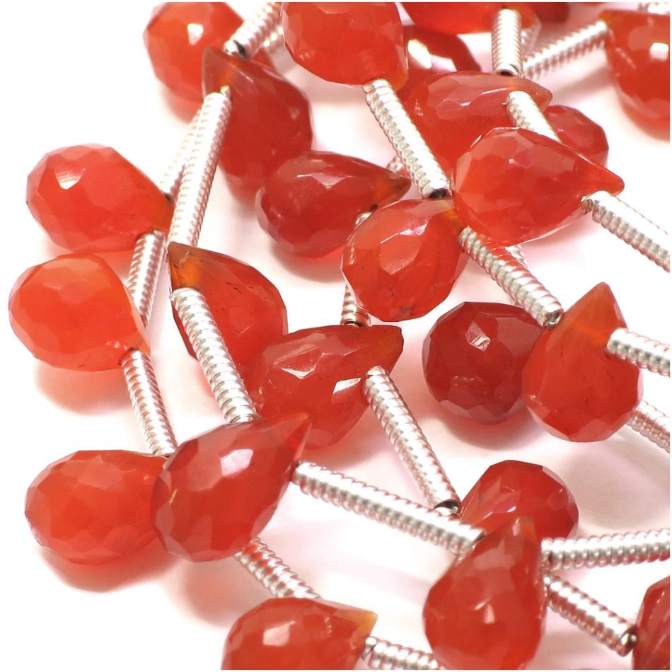 カーネリアン 7×4.5mm 天然石 ビーズ ドロップカット 4玉セット 粒売り パワーストーン バラ売り ビ-ズ パーツ 紅玉髄...