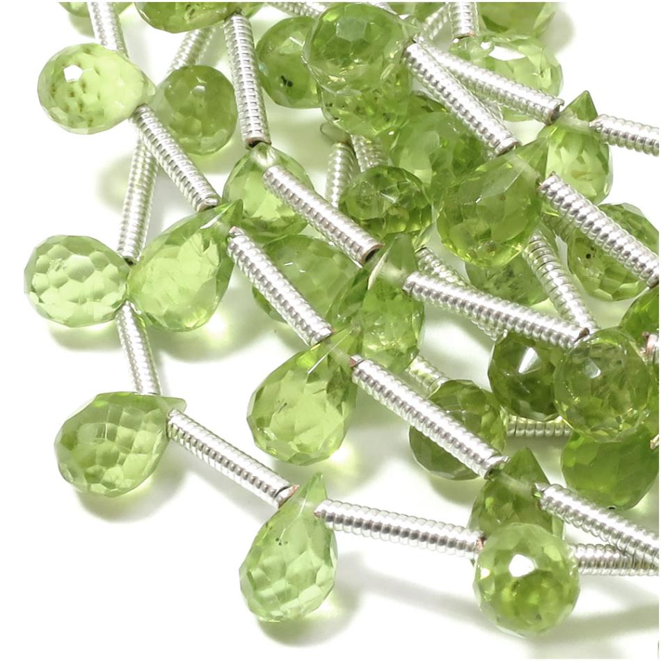 ペリドット 6×4mm 天然石 ビーズ ドロップカット 4玉セット 粒売り パワーストーン バラ売り 8月 誕生石 ビ-ズ パーツ...