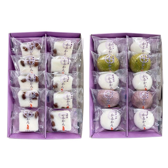 送料無料 九面屋 かる饅頭3色10個入+塩豆かるかん10個入 2箱 メーカー直送 代引・同梱不可