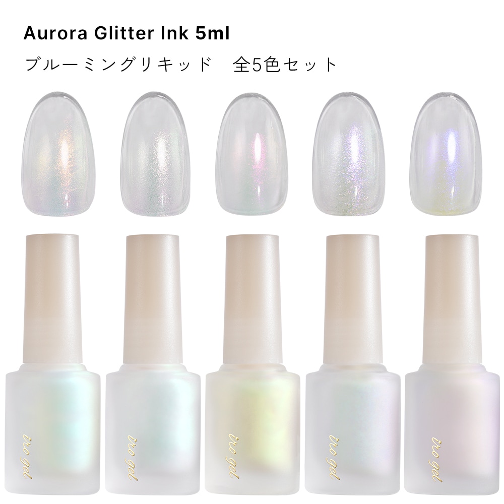 【ネコポス送料無料】irogel ブルーミングリキッド オーロラグリッターインク 全5色セット 各約5ml入り ニュアンスネイル