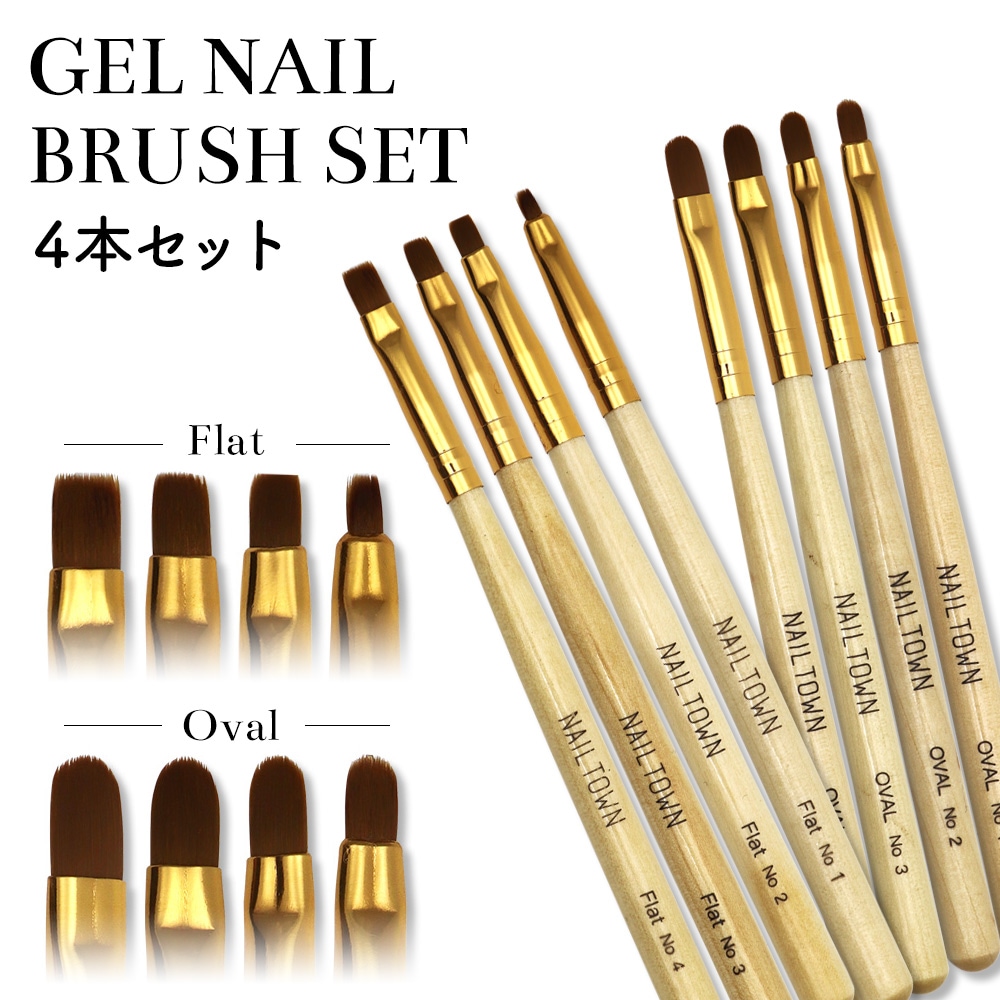 【ネコポス送料無料】ネイルツール NAILTOWN キャップ付きジェルブラシ4本セット [全2種/フラット・オーバル]
