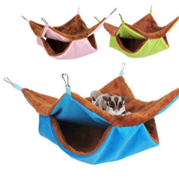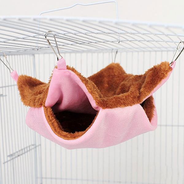 小動物用 ハンモック 20×20cm 柔らかい 暖かい 保温 モフモフ 2段 フック 簡単取り付け 小型 ベット ベッド 寝床 冬...