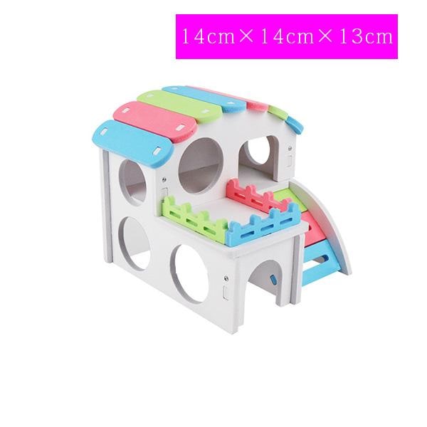 ハムスター 小動物用 スモールタイプ 14×14×13cm 2階 階段 バルコニー付き カラフル 水洗い可 お手入れ簡単 かじって...