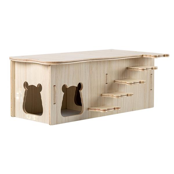 ハムスター 小動物用 ハウス 木製 大サイズ 340×185×130mm 入口 54×55mm 階段付き 屋上 オープンスペース ...