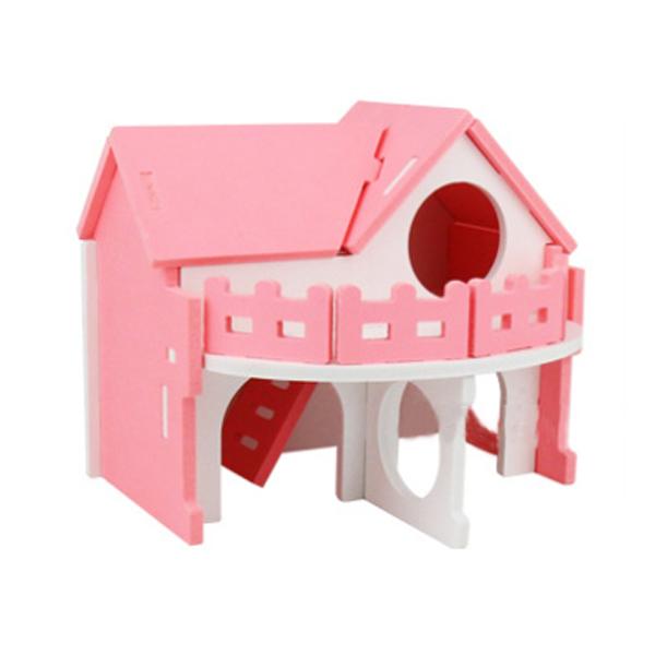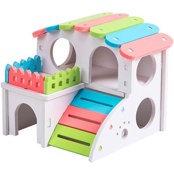 ハムスター 小動物用 ハウス 20×15×15cm 2階 フェンス 階段 ロフト付き カラフル おしゃれ 釘 ネジ不使用 かじって...