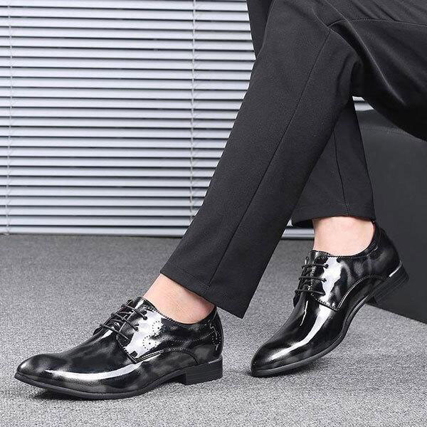 メンズ スモーク柄 ドレスシューズ エナメル シューズ 靴 カジュアルシューズ 紳士靴 スマート 通気性 シルエット パーティー ...