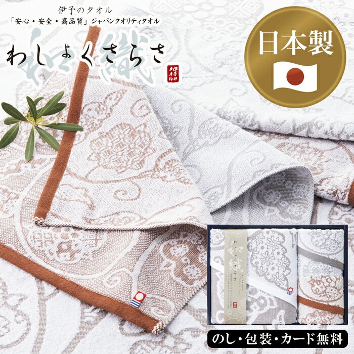 わしょくさらさ バスタオル、フェイスタオル2P SE5-85-10 今治タオル 内祝 結婚祝い 香典返