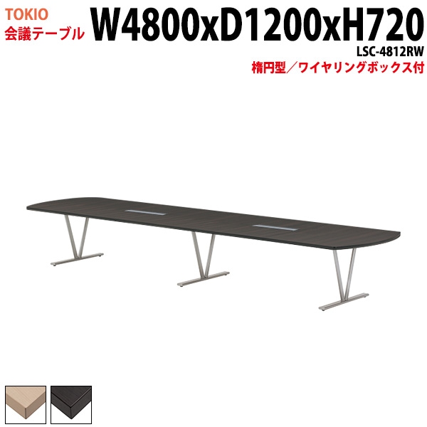 ミーティングテーブル LSC-4812RW 幅480x奥行120x高さ72cm 楕円型 ワイヤリングボックス付 【法人様配送料無料...