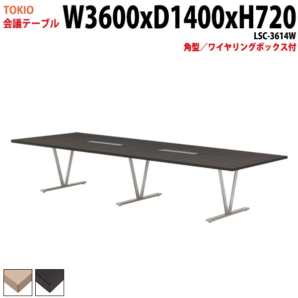 ミーティングテーブル LSC-3614W 幅360x奥行140x高さ72cm 角型 ワイヤリングボックス付 【法人様配送料無料(北...