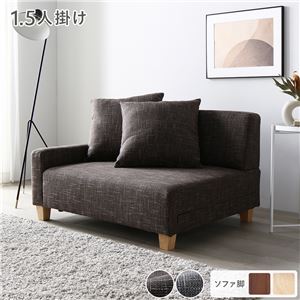Office168ローソファ 1.5人掛け 単品 アッシュグレー 脚:ブラウン コンパクト 肘付き クッション ローソファ 組立品...