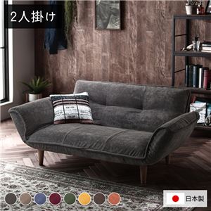 Office168厳選 リクライニングソファー/ローソファー 【2人掛け コーデュロイ生地 チャコールグレー】 脚部:ナチュラル ...