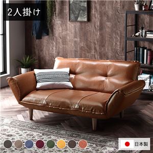 Office168厳選 リクライニングソファー/ローソファー 【2人掛け ヴィンテージPVC生地 ヴィンテージキャメル】 脚部:ナ...