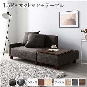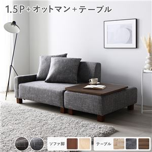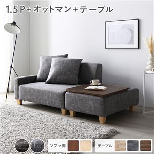 Office168厳選ソファセット コンパクトカウチ 〔 1.5人掛け オットマン アッシュグレー テーブルトレイ ブラウン 脚:...