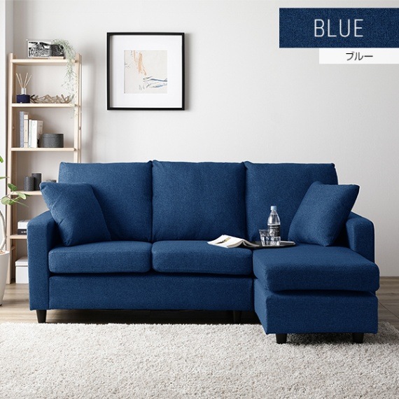 Office168カウチソファー/ローソファ― 【3人掛け ブルー】 約幅176cm オットマンスタイル可 肘付き クッション付き...