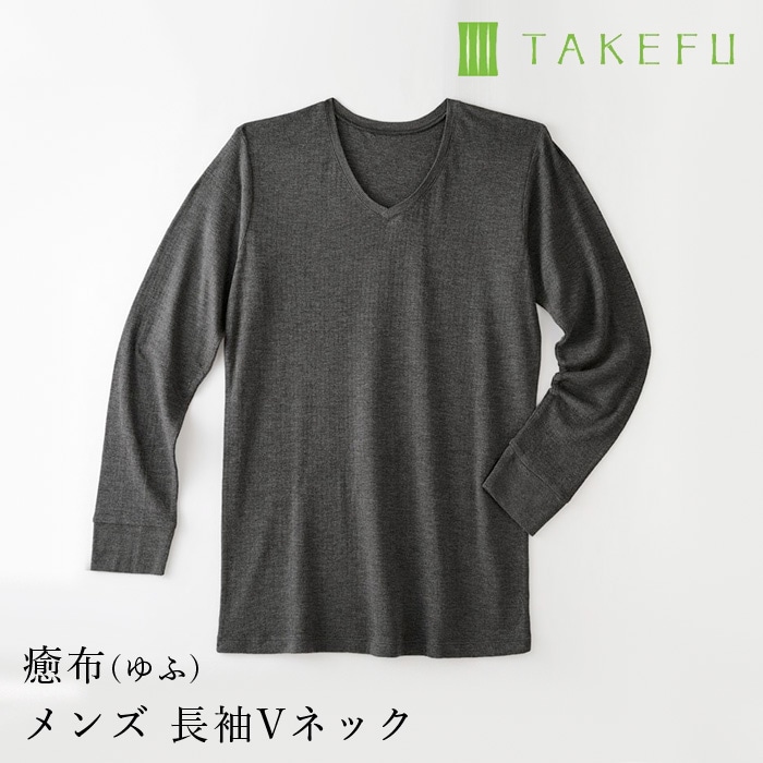 竹布 TAKEFU 癒布 メンズ 竹の長袖Vネック(メール便使用で送料無料!)