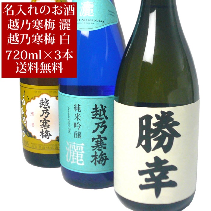 名入れ日本酒&越乃寒梅 灑(さい)、越乃寒梅白ラベル セット720ml×3本