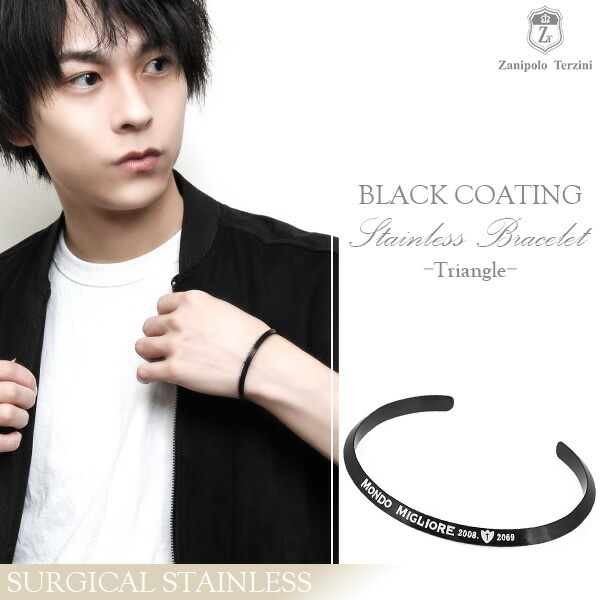 ザニポロタルツィーニ ブラック トライアングル サージカルステンレス バングル メンズ ブレスレット メンズブレスレット ブレス ...