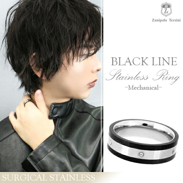 Zanipolo Terzini ブラック メカニカル サージカルステンレス リング 15~23号 ステンレス アクセサリー メン...