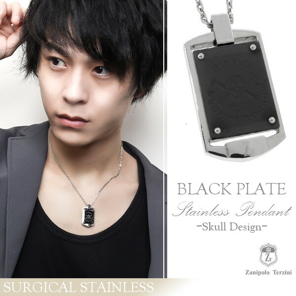 ザニポロタルツィーニ スカルブラックプレート サージカルステンレス ネックレス ステンレス アクセサリー メンズ 男性用 プレート...