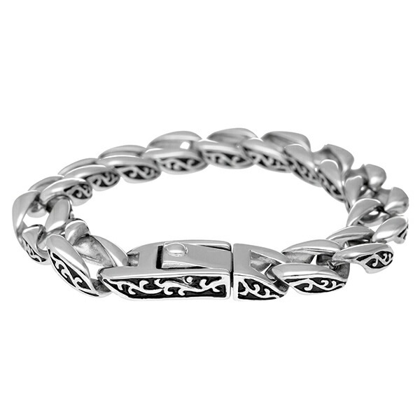 アラベスク ステンレス チェーン ブレスレット 19cm サージカルステンレス ステンレスブレスレット 喜平チェーン 植物 極太 ...