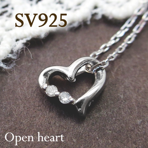 entiere スモールオープンハートwithダイヤモンド シルバー ネックレスギフトBOX付き シルバーアクセサリー レディース...
