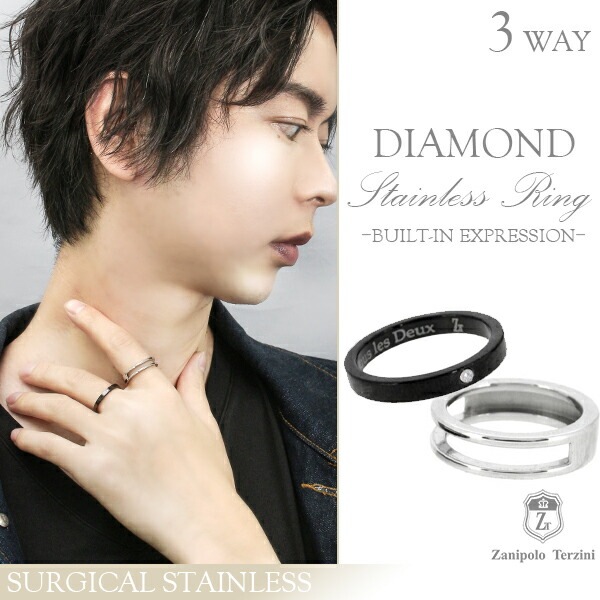 ザニポロタルツィーニ スリーウェイ デザイン ダイヤモンド サージカルステンレス リング 7~23号 ステンレス アクセサリー メ...