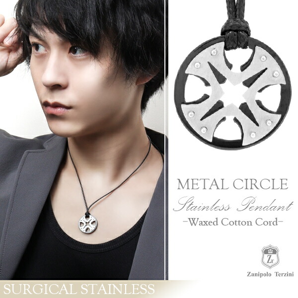 ザニポロタルツィーニ メタルサークル サージカルステンレス ネックレス ワックスコットンコード付きペンダントトップ ステンレス ア...