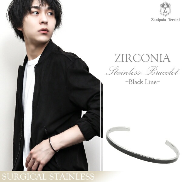 ザニポロタルツィーニ ブラック ライン ジルコニア サージカルステンレス メンズバングル ブレスレット メンズ 男性用メンズブレス...