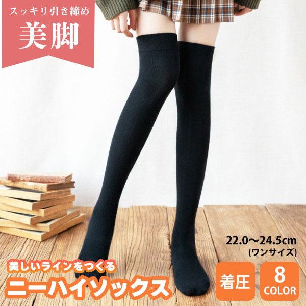 【即納】レディース 靴下 ニーハイソックス 膝上 無地 コーマ綿 大人っぽい 春秋コーデ カジュアル 防寒 着圧 引き締め効果 美...