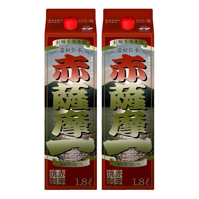 【送料無料】赤薩摩一 パック 25度 1800ml×2本 芋焼酎 若松酒造
