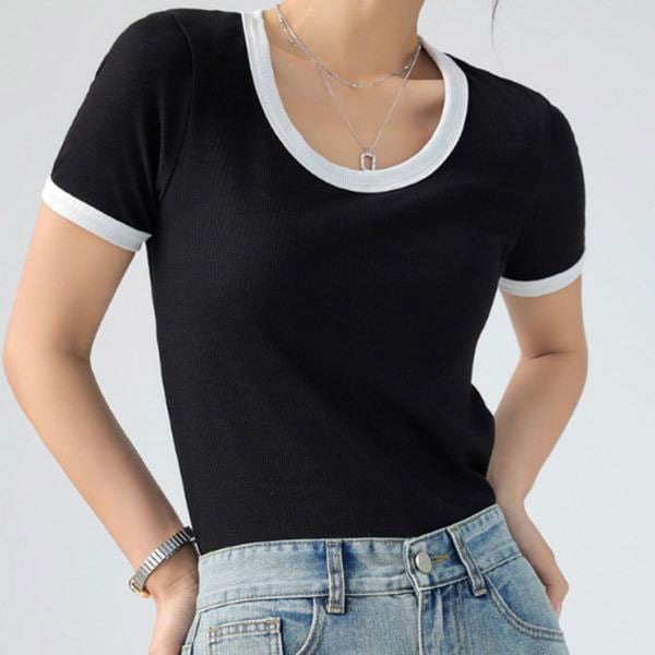 レディース パイピング Tシャツ 半袖 カットソー トップス インナー ラウンドネック デコルテ フィット 伸縮性 肌に優しい 無...
