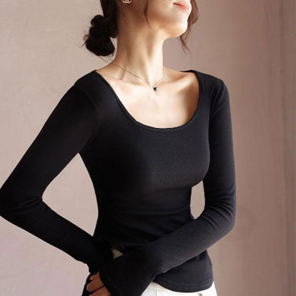 レディース Uネック Tシャツ 半袖 シャツ インナー トップス ラウンドネック デコルテ 伸縮性 動きやすい エレガント シンプ...