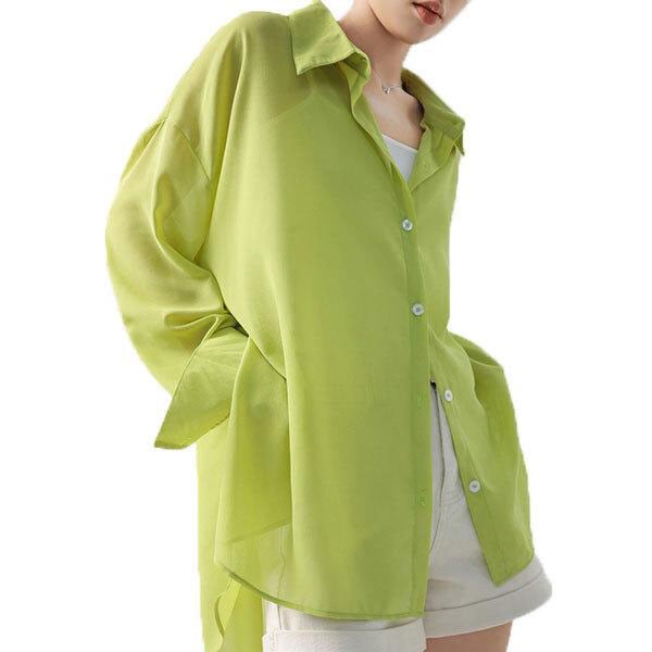 レディース シアーシャツ ブラウス 長袖 シャツ 透け感 体型カバー 冷房対策 日焼け対策 ゆったり シルエット レイヤード 羽織...