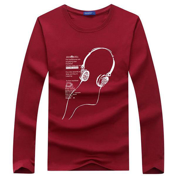 メンズ ヘッドフォン プリント 長袖 ロング Tシャツ カットソー ロンT インナー トップス 大きいサイズ スリムフィット 重ね...