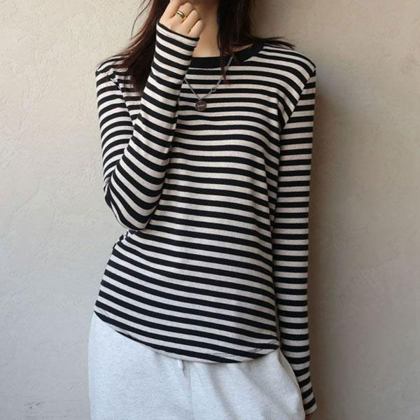 レディース ボーダー カットソー Tシャツ プルオーバー 長袖 トップス 指穴付き スリムフィット ストレッチ 伸縮性 着心地 快...