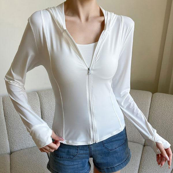 レディース アイスシルク 接触冷感 パーカー 長袖 フード付き ジッパー付き 指穴 バックル付き ストレッチ 伸縮性 紫外線対策 ...