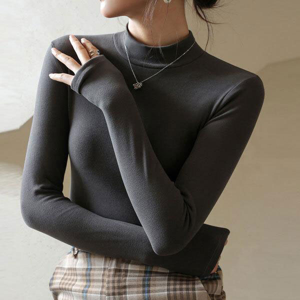 レディース 裏起毛 ハイネック カットソー Tシャツ 長袖 トップス 両面起毛 伸縮性 保温性 シルエット レイヤード 暖かい 無...