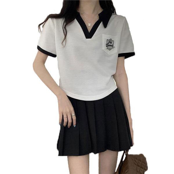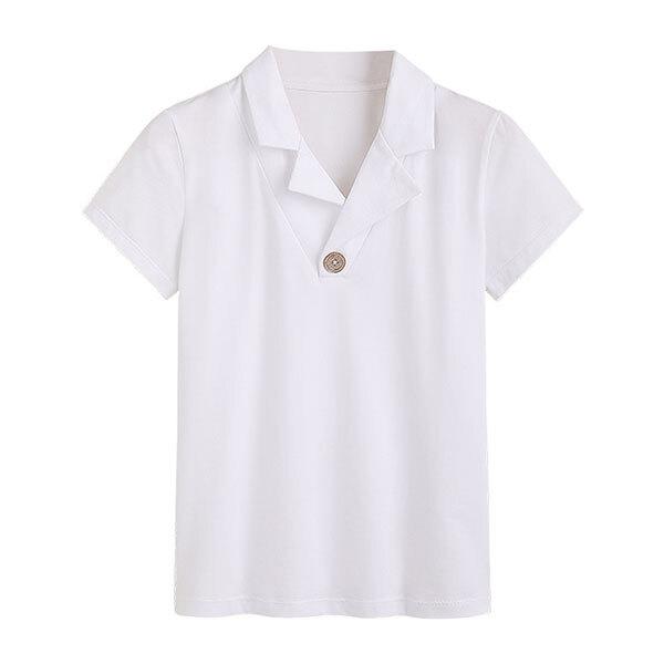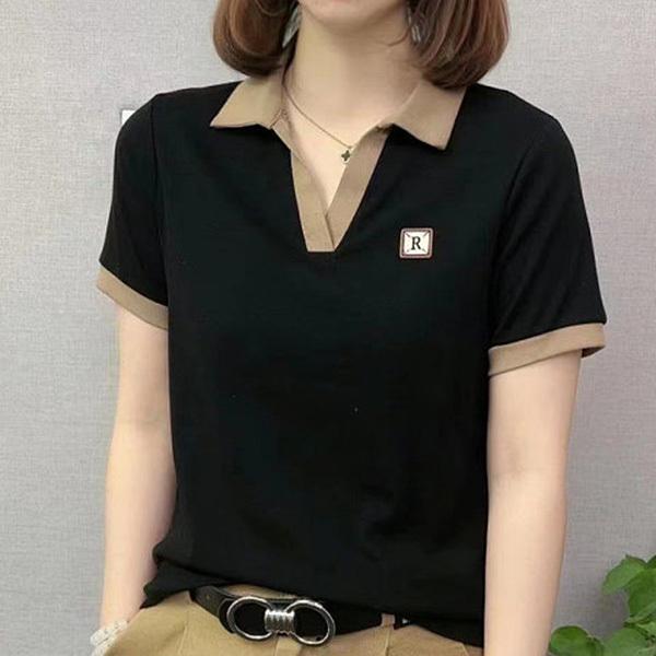 レディース 襟付き ポロシャツ カットソー 半袖 ボタンなし オープンカラー コットン スポーティー カジュアル スタイル 可愛い...