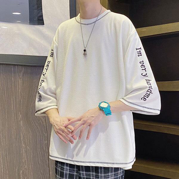 【セール】即納 安い 七分袖 Tシャツ メンズ サマー 半袖 ルーズウェア ハーフスリーブ トップス 夏 ワイド リラックス 清涼...