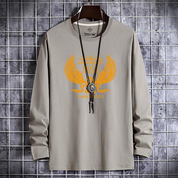 【セール】即納 安い メンズ 長袖 Tシャツ ロンT ロングTシャツ カットソー トップス クルーネック フェザー柄 羽柄 アメカ...