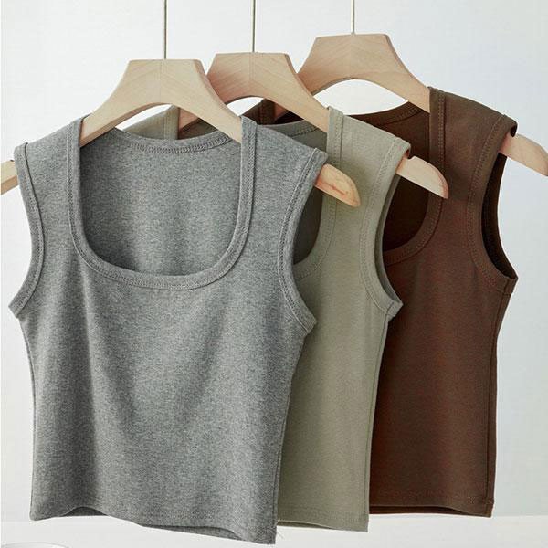 レディース ショート丈 タンクトップ インナー トップス スクエアネック ストレッチ 伸縮性 ゆったり フィット カジュアル 着回...